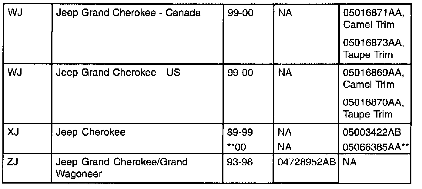 1989 - **2000** (XJ) Cherokee/Wagoneer
