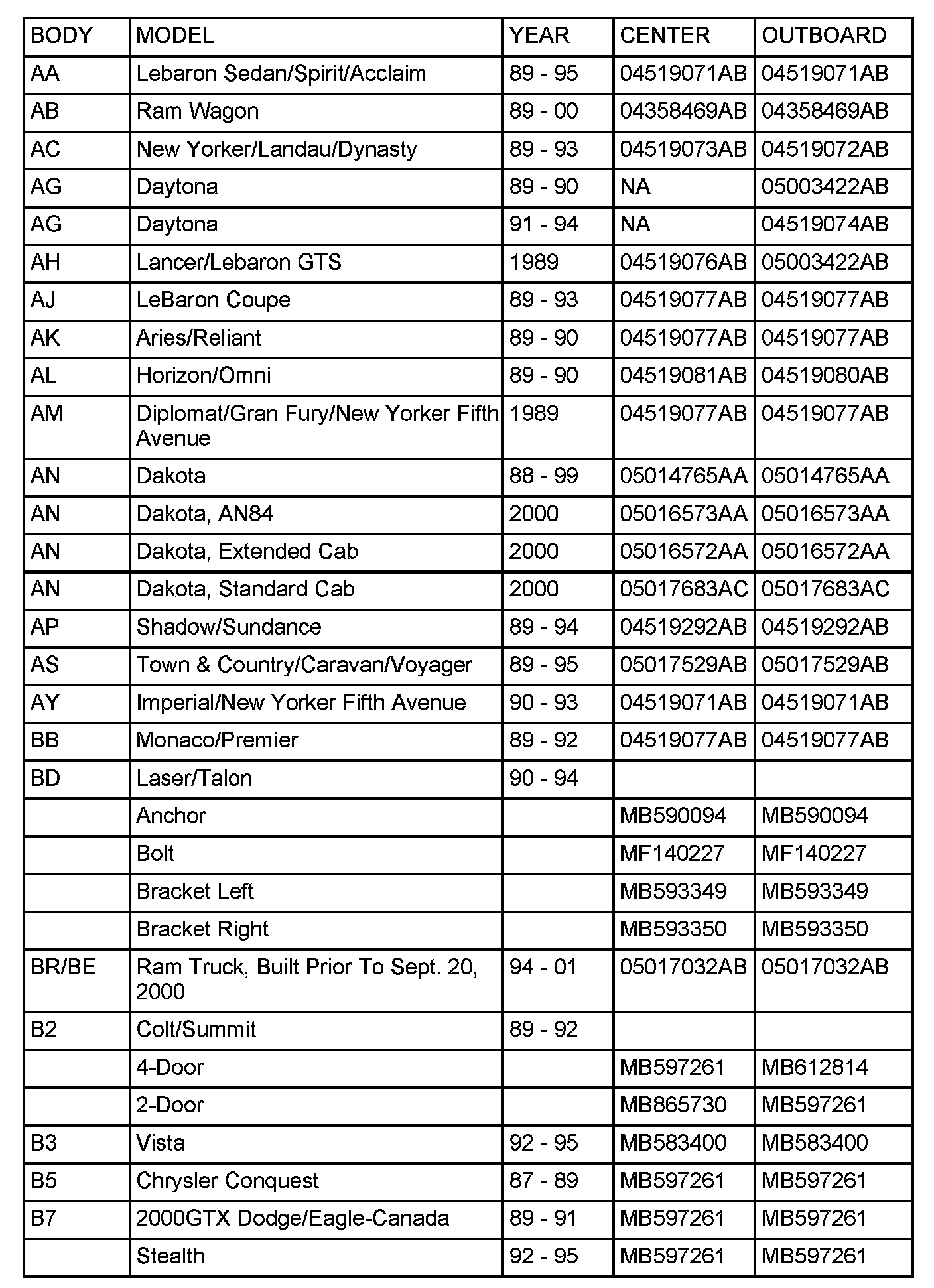 1989 - 1995 (AA) Spirit/Acclaim/LeBaron Sedan