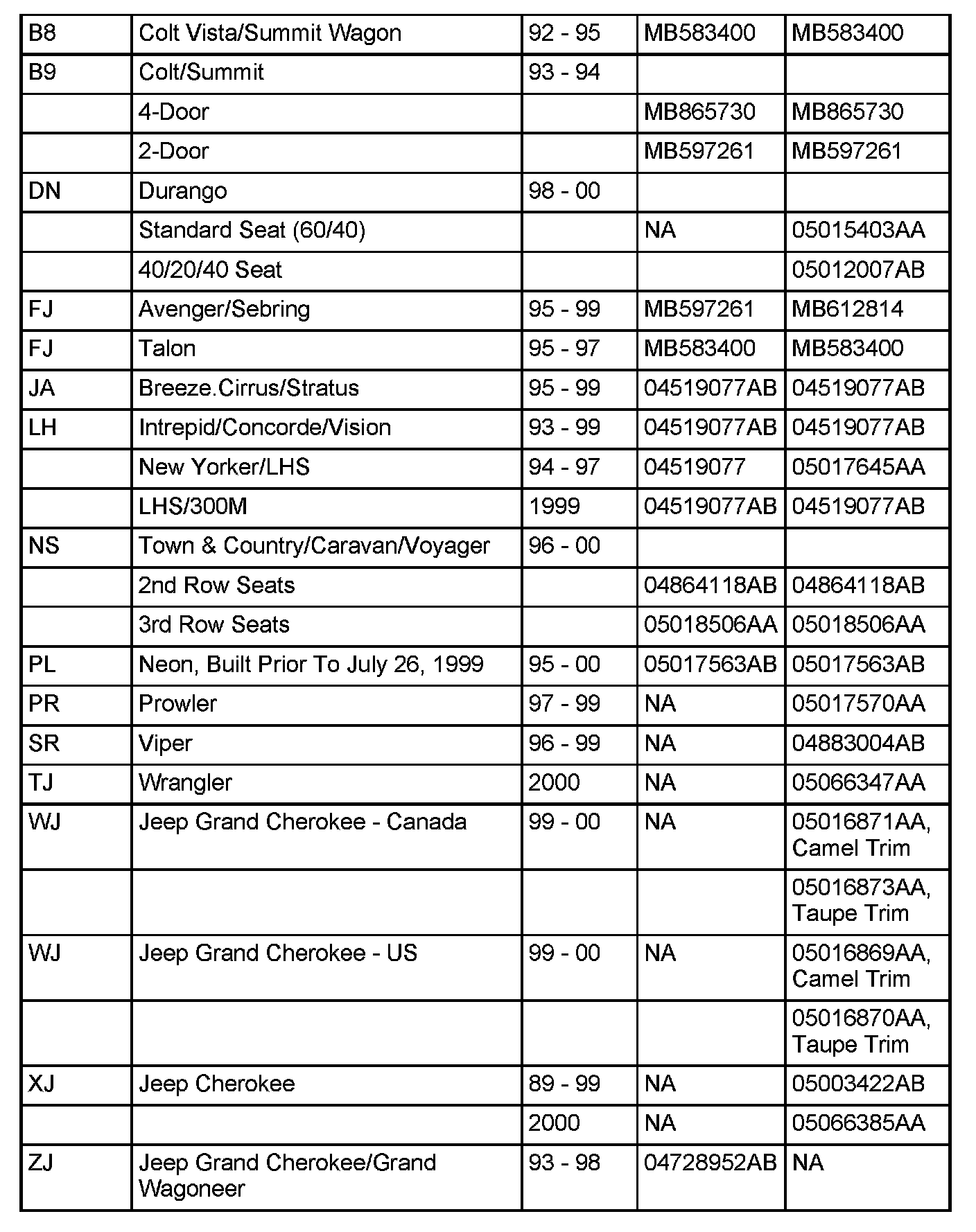 Chrysler is offering child seat tether anchors for the selected vehicles listed above. Each tether anchor is packaged in a kit containing all necessary parts and a detailed instruction sheet.