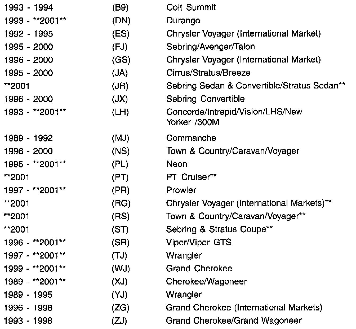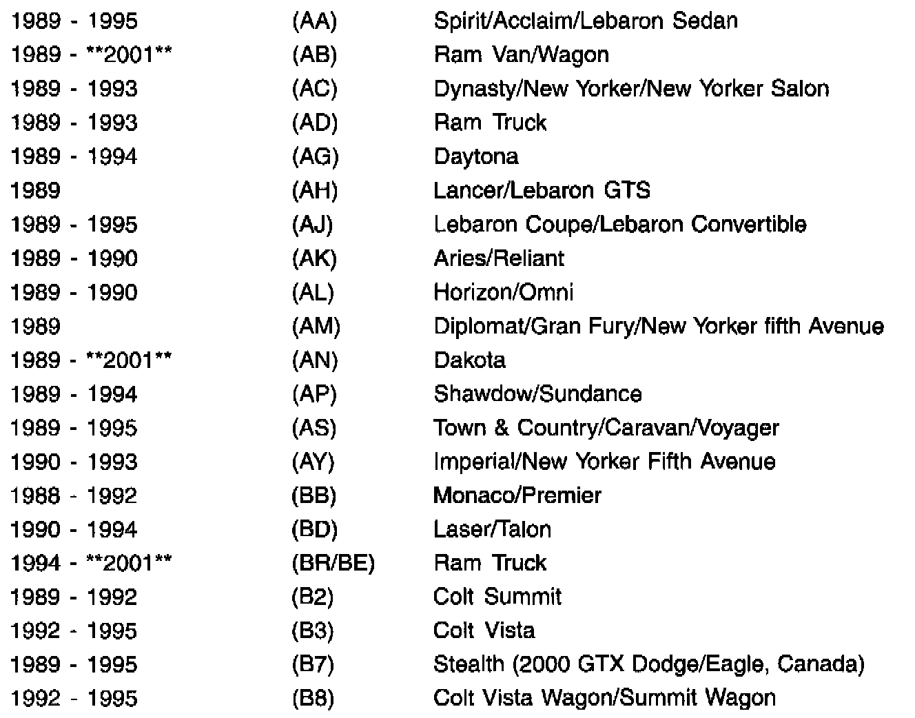 THIS BULLETIN SUPERSEDES TECHNICAL SERVICE BULLETIN 08-06-00, DATED FEBRUARY 25, 2000, WHICH SHOULD BE REMOVED FROM YOUR FILES. ALL REVISION ARE HIGHLIGHTED WITH **ASTERISKS**AND INCLUDE PART APPLICATIONS AND ADDITIONAL MODELS.