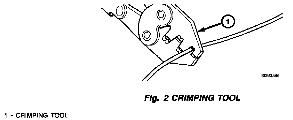 4. Using crimping tool, Mopar p/n 05019912AA, crimp the splice band and wires together (Fig. 2).