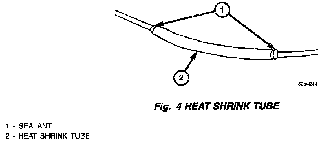 6. Center the heat shrink tubing over the joint and heat using a heat gun. Heat the joint until the tubing is tightly sealed and sealant comes out of both ends of the tubing (Fig. 4).