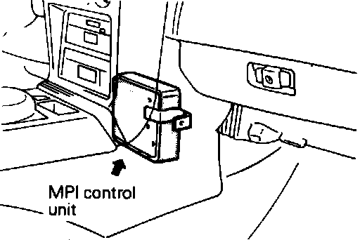 The Electronic Control Unit (ECU) controls the fuel injection system, ignition timing, and the idle speed control system. The ECU also interrupts the operation of the air conditioning and EGR systems, and controls power to the fuel pump (through the control relay). The ECU consists of an 8-bit microprocessor, random access memory (RAM), read only memory (ROM), and an input/output interface.