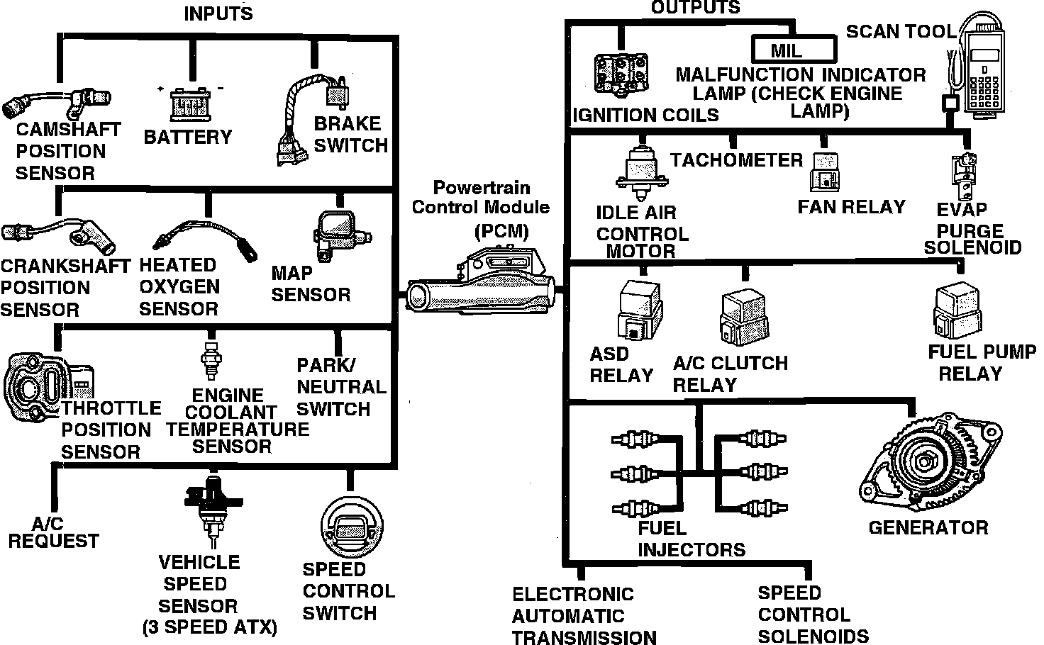 The PCM then actuates various output devices to achieve the best compromise between power, fuel consumption, and emissions.