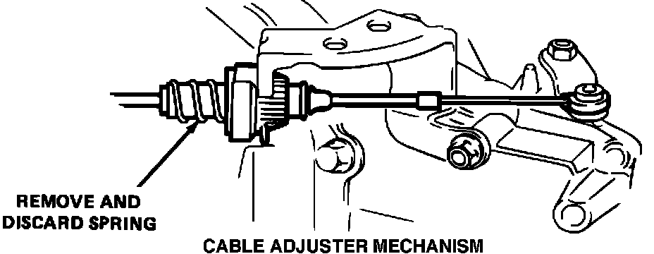 2. Underhood, use needle nose pliers to remove and discard spring from cable adjuster mechanism. Spring was omitted in later production. Refer to Figure.