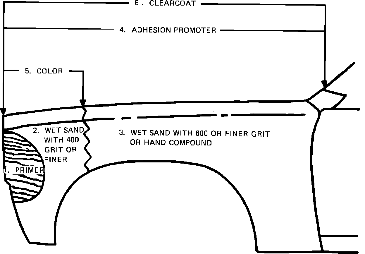 2. Wet sand area to be primed and color coated with 400 grit or finer.