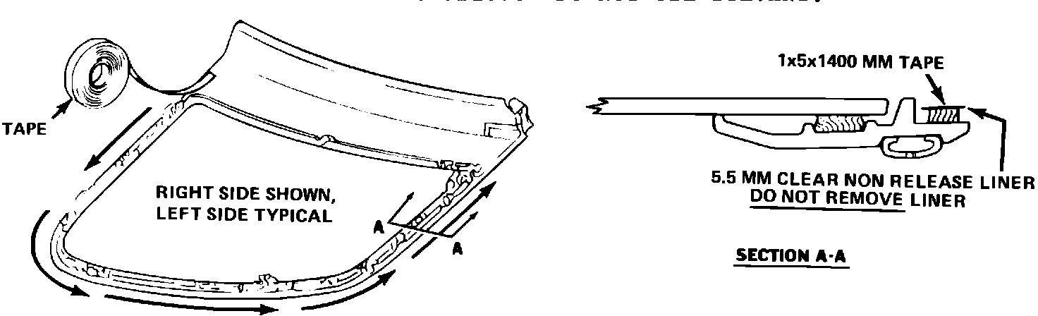 2. Apply tape, Part Number 12393610, to the inside surface of the outer flange of the window module for the entire periphery of the module and cut off the excess. DO NOT REMOVE THE CLEAR LINER OF THE TAPE. (Figure 1)