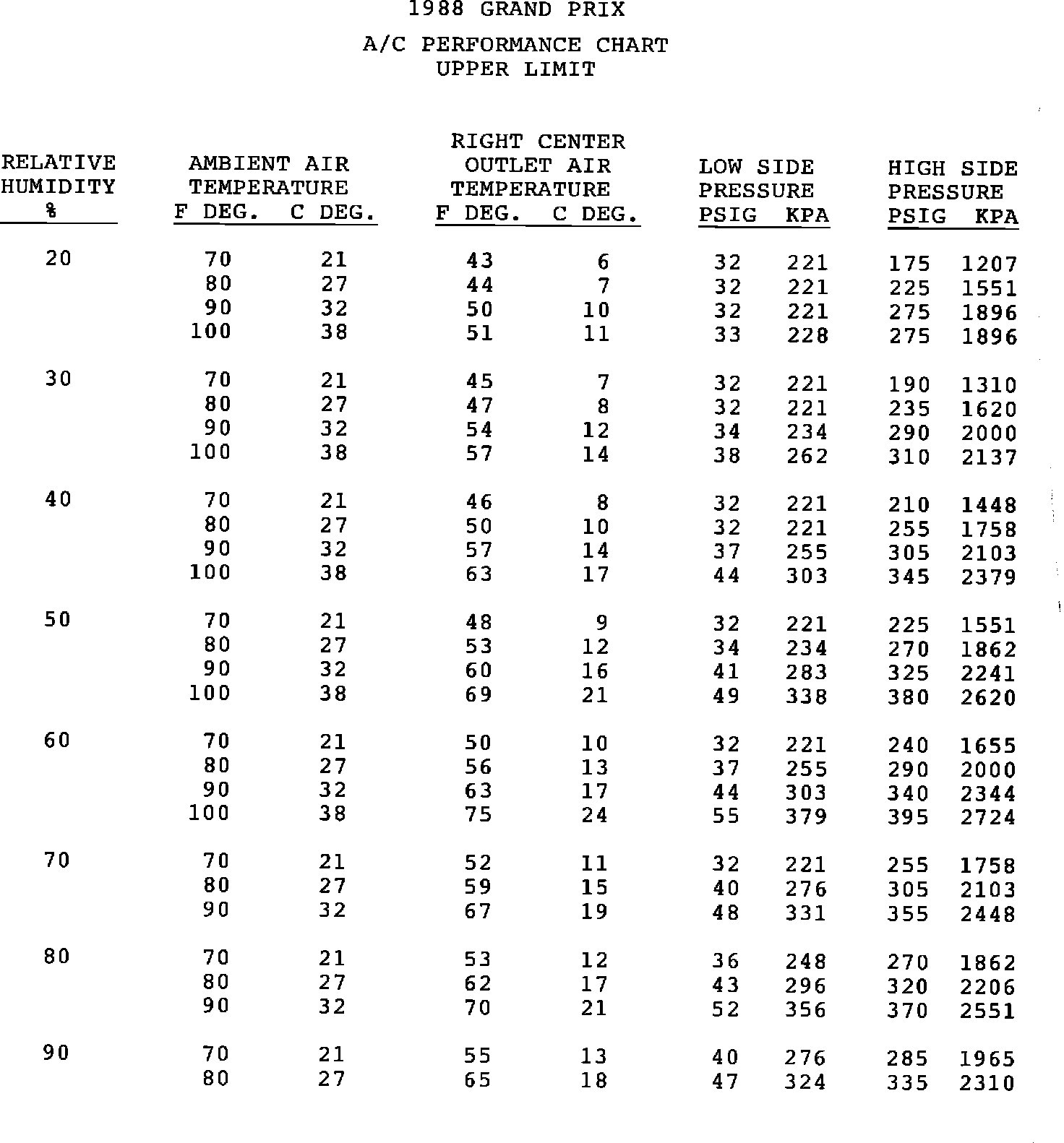 A/C PERFORMANCE CHART UPPER LIMIT