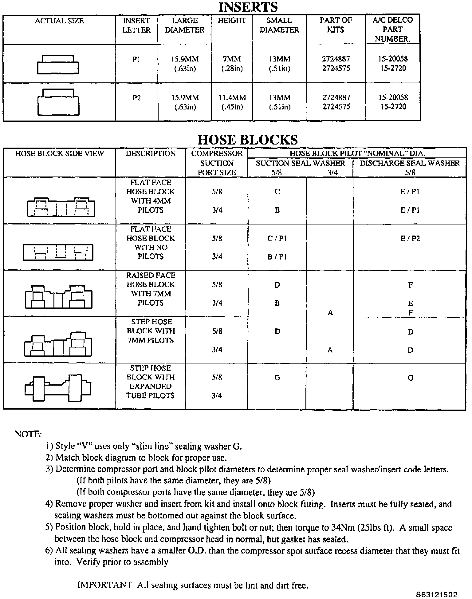 GMSPO A/C compressors include a seal washer kit. These kits contain various color edge painted washer seals and inserts in which only two (2) washers and possibly one (1) insert are used. It has come to our attention that some packaging discrepancies were found and some of the seals cannot be properly identified for installation.