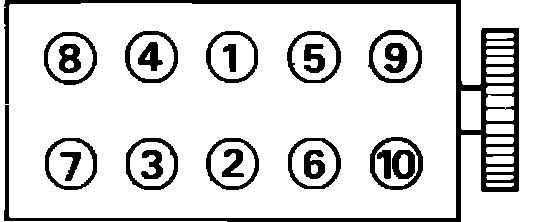 Loosen head bolts 1/2 turn, then torque to 68 ft.lbs. following sequence shown in Fig. 5.