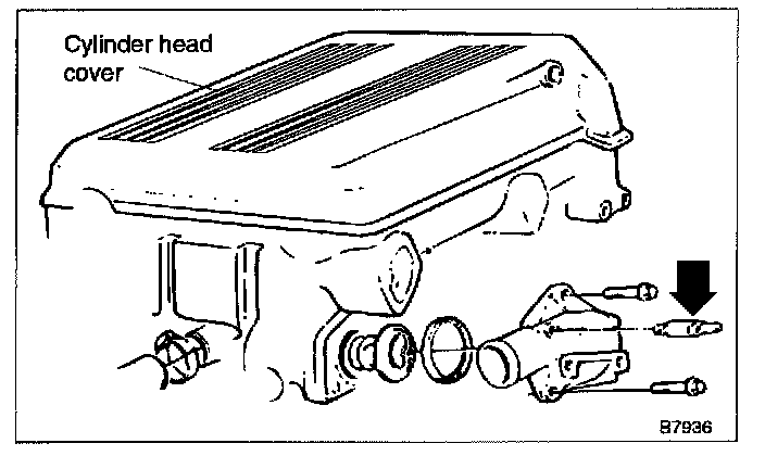 5. With the engine off, open the bleeder screw on the thermostat housing. Using a coolant mixture of 50% anti-freeze and 50% water, fill the expansion tank slowly so that air is allowed to escape. Close the bleeder screw when coolant begins to come out of the bleeder. Run the engine and check for leaks.