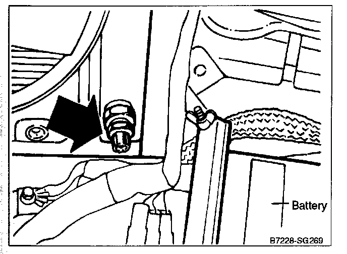 2. Loosen the radiator drain plug at the bottom of the radiator next to the battery.