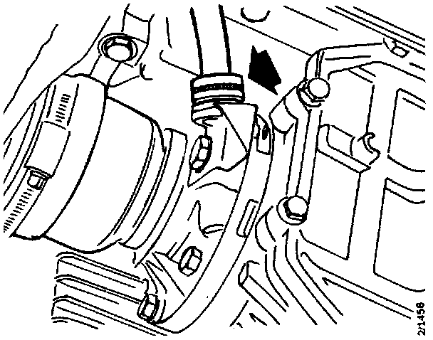 3. Lower the power unit into the engine compartment down to a height at which the oil cooler hoses, the oil pressure sensor and the steering servo pump return hose can be connected.