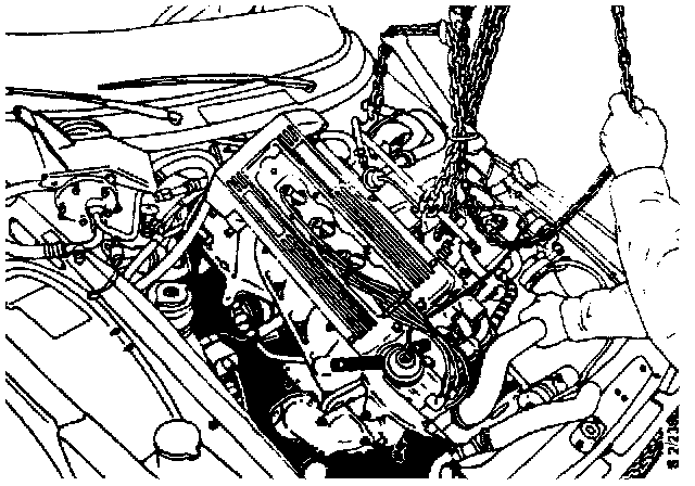 2. Suspend the power unit from the lifting yoke so that the front engine mounting is somewhat lower than the rear mountings.