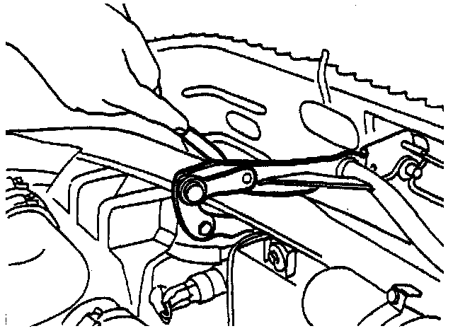 1. Remove the bonnet by releasing the links at each hinge, and disconnect the hose for the washers.