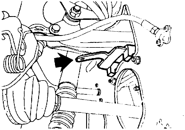 2. Fit tool 83 93 209 between the right-hand upper wishbone and the body. Turn the steering wheel to the right-hand lock and fit the tool from the wheel housing side.