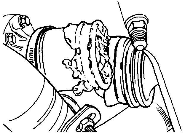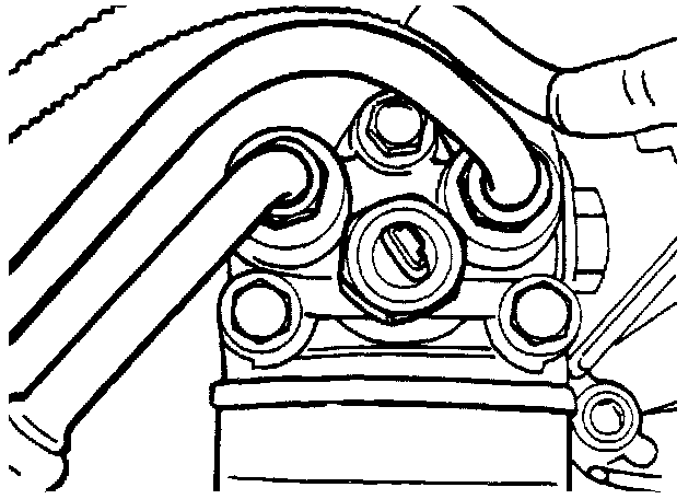 13. Release the pipe coupling on the delivery side of the steering servo pump. Plug the pipe and avoid spilling oil on the engine mounting.