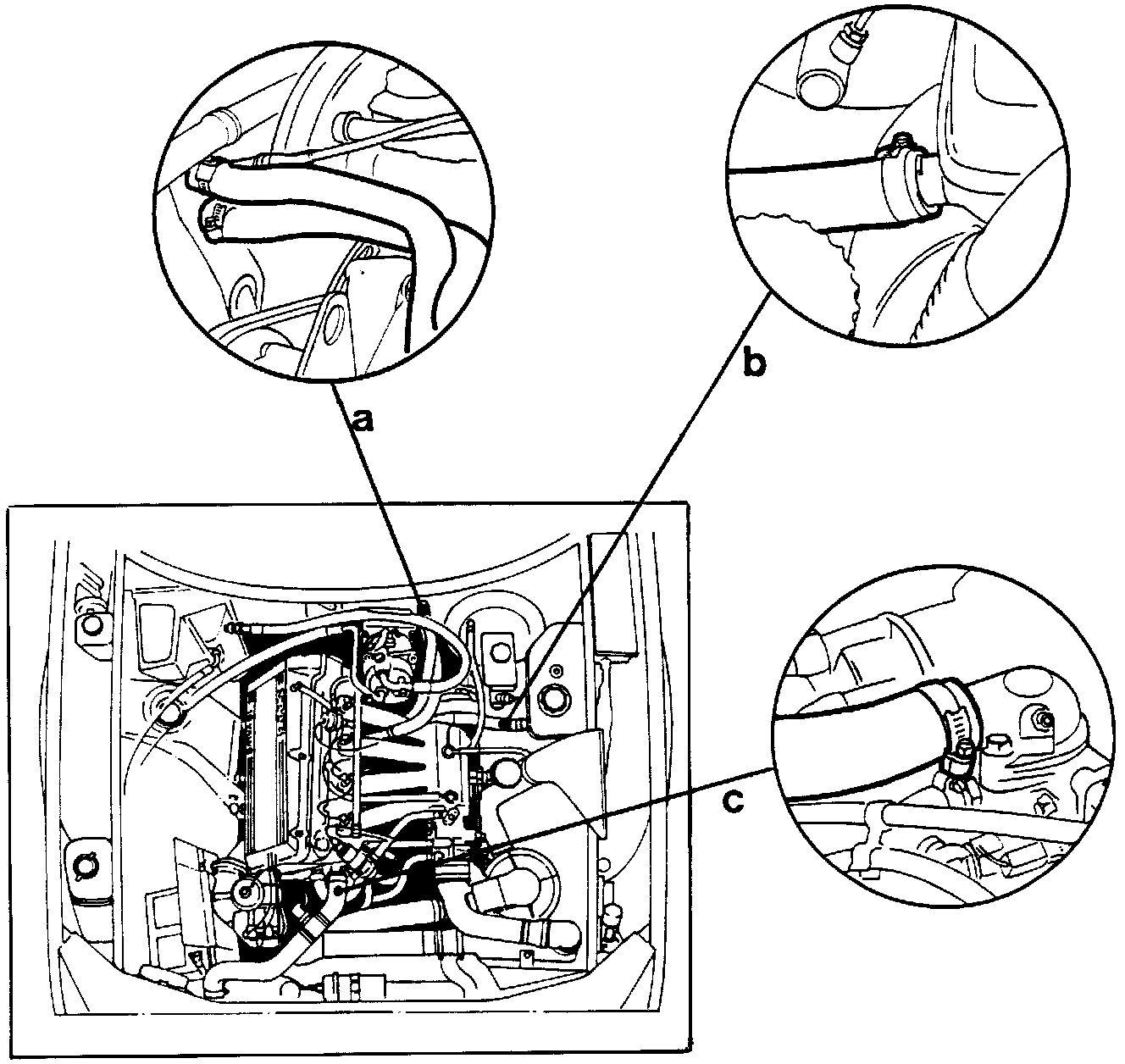 The procedure described below applies to a car with the Turbo engine, with intercooler, AC, catalytic converter and water-cooled turbocharger (1988 model).