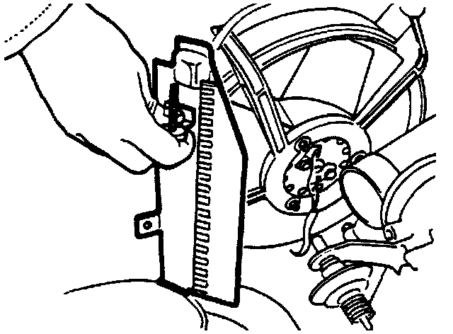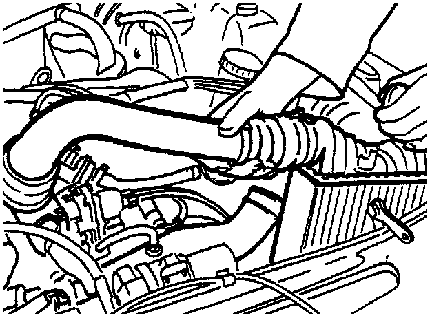 27. Disconnect the coolant hose from the bottom of the radiator.