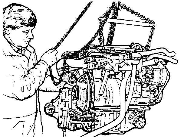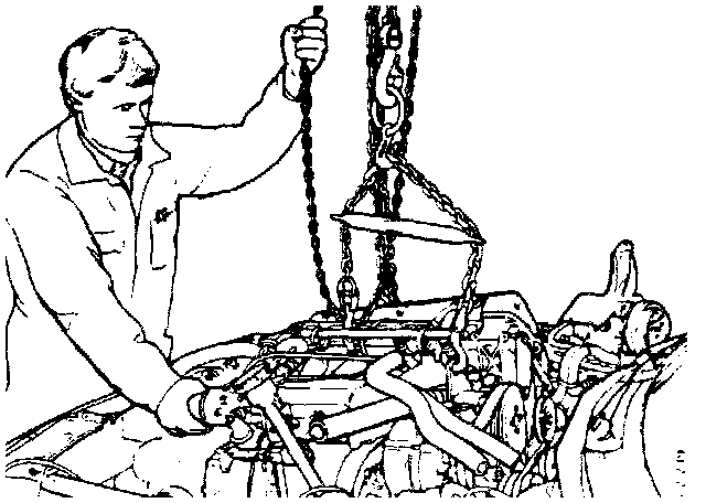 40. Secure the lifting yoke to the power unit and lift the power unit so that the left-hand inner universal joint can be separated.