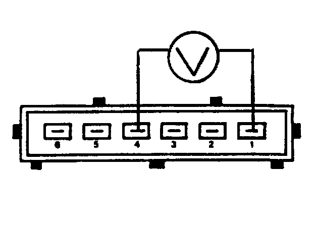 4. Start the engine and rev it up to 2500 rpm. Connect the test prods to pins 1 and 4 of the mass air flow sensor connector. Switch off the engine. Four seconds later the voltage should rise to 4 V for about one second.