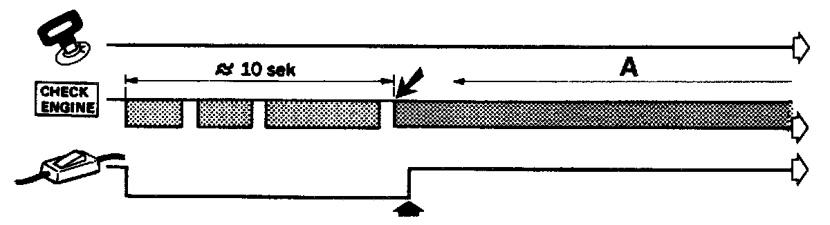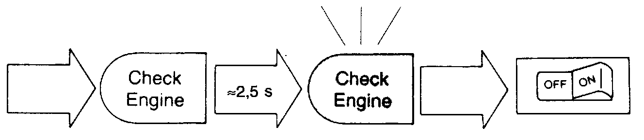 5 Watch the "CHECK ENGINE" lamp carefully. After about 2.5 seconds it will flash briefly, signifying that the first fault code is to be activated. As soon as the lamp has flashed, set the switch immediately to "OFF".