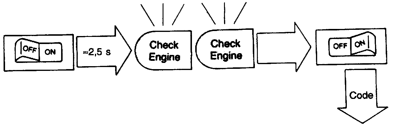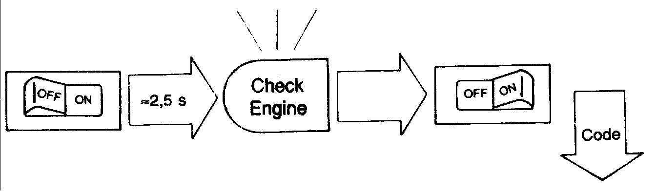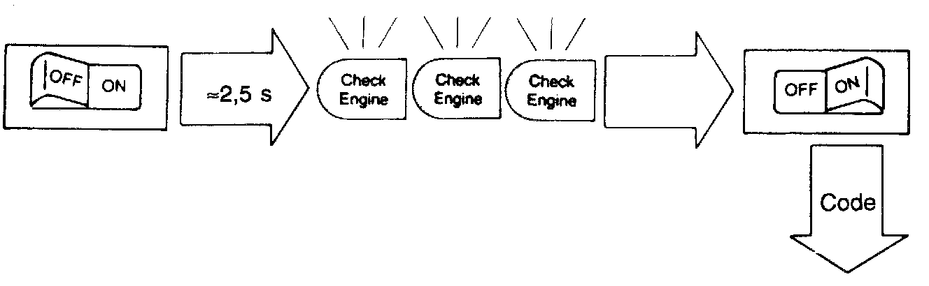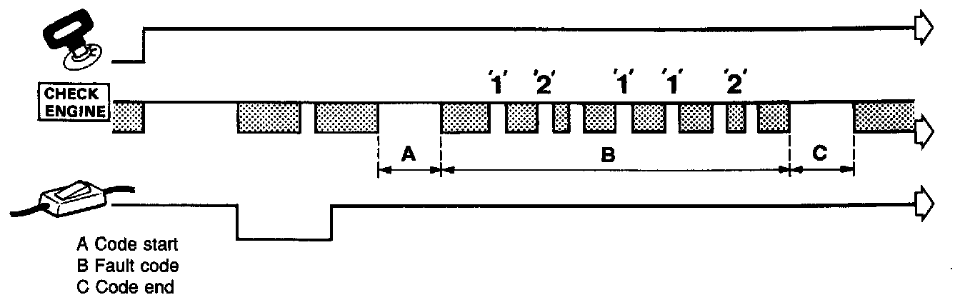 Note: The fault codes starts and finishes with a long flash of the "CHECK ENGINE" lamp. These long flashes have nothing to do with the code itself but serve merely to indicate the beginning and end of the code.