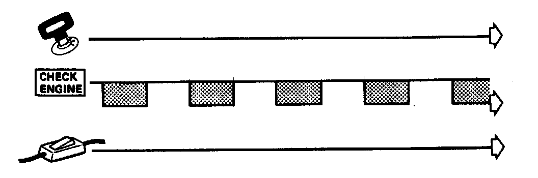 The memory has now been cleared, which is indicated by a continuous series of long flashes of the "CHECK ENGINE" lamp.