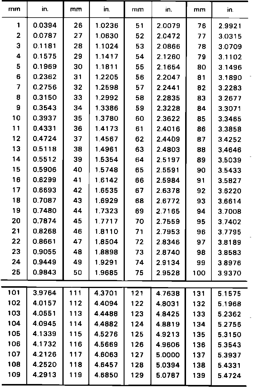 Millimeters to Inches