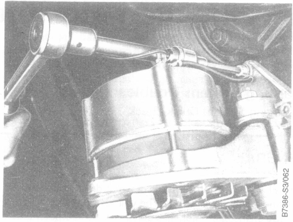 2. Loosen the alternator V-belt tensioning bolts, pivot the alternator and remove the alternator V-belts.
