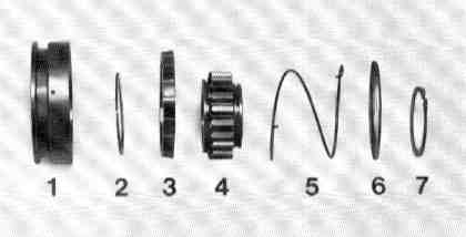 5. Circlip for guide ring (due to a dimensional error some gearwheels may be fitted with two circlips)