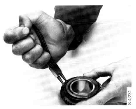 To dismantle the synchromesh unit, remove the circlip retaining the baulk ring on the gearwheel. To remove the 5th baulk ring, remove the circlip at the guide ring. The circlip at the baulk ring need not be removed.