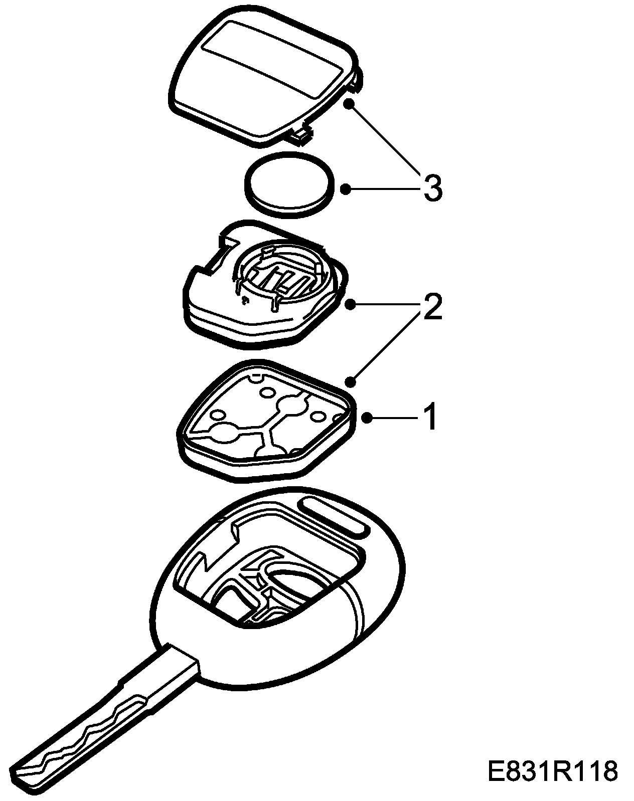 3. Refit the battery and the cover. When replacing the battery, use a SAAB original battery.