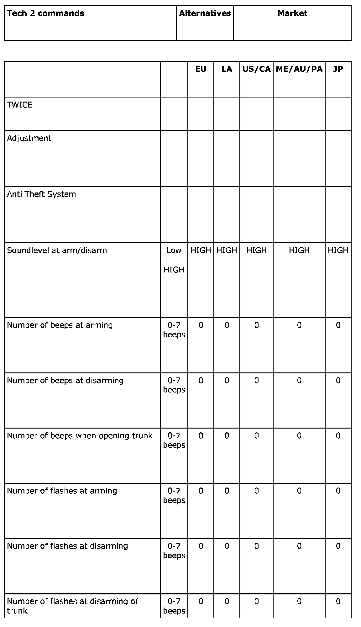 A number of parameters for the anti-theft function are preset to suit the requirements of various markets (countries).
