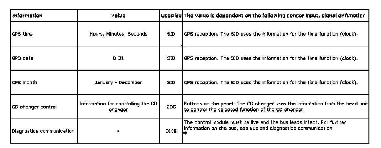For a further description of the car's bus system, see System overview, bus and diagnostics communication, petrol.