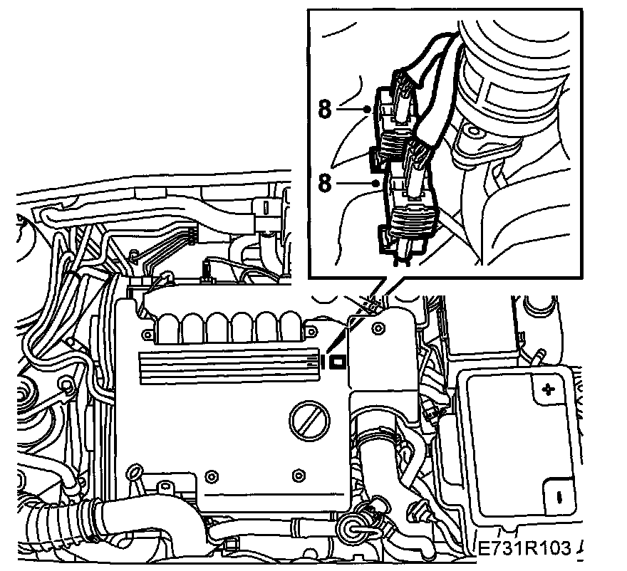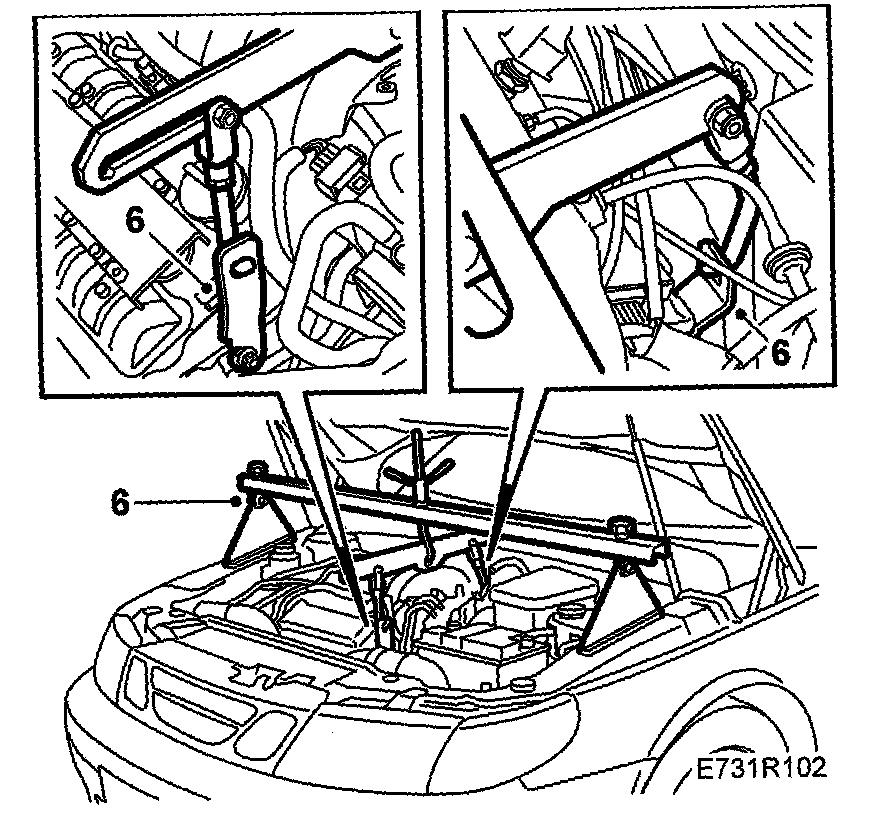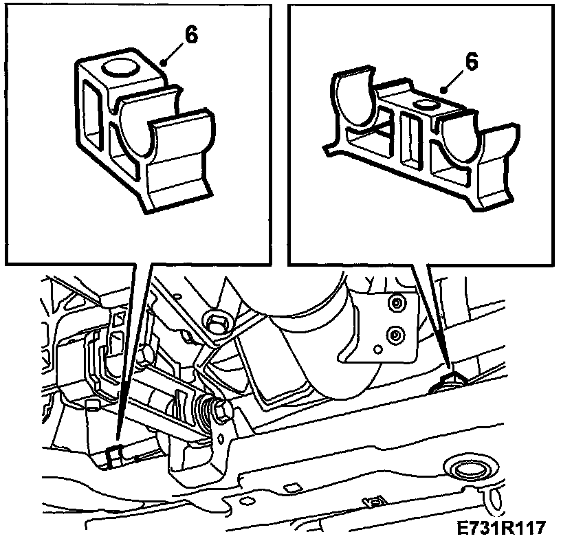6. V6 engine: Fit lifting eyebolts, one at the rear of the cylinder head and one at the front (undo the existing bolt first). Fit 83 95 287 Holder.