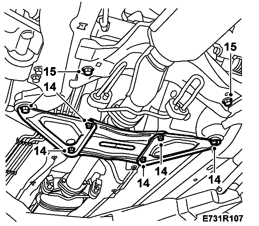 14. Remove the rear subframe mounting reinforcement.