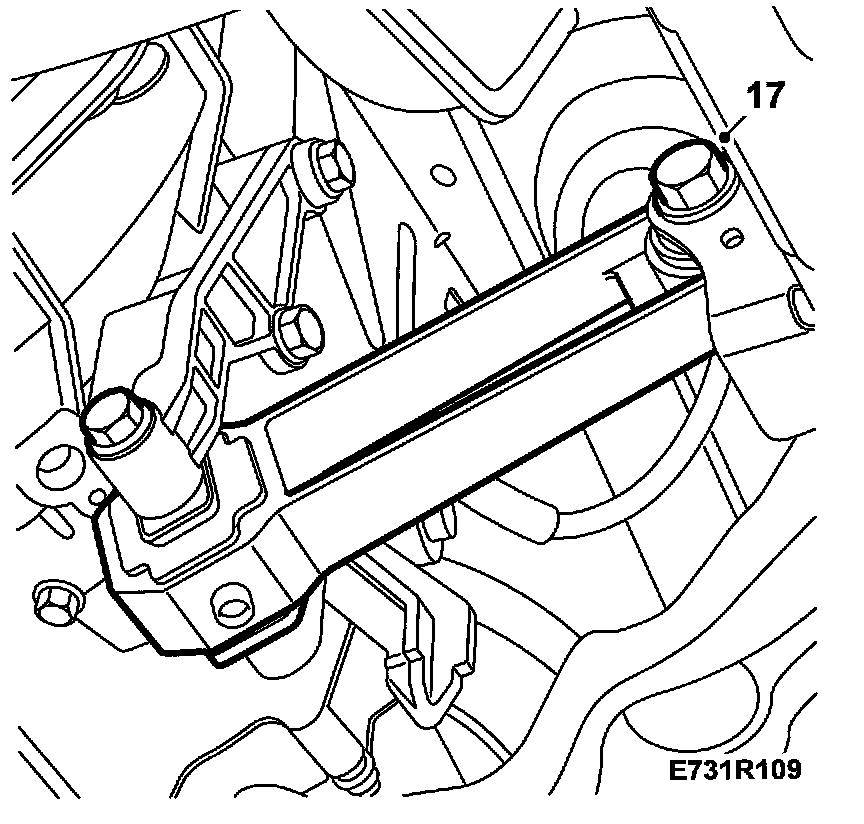 5. Remove the bolts securing the rear engine mounting to the subframe.