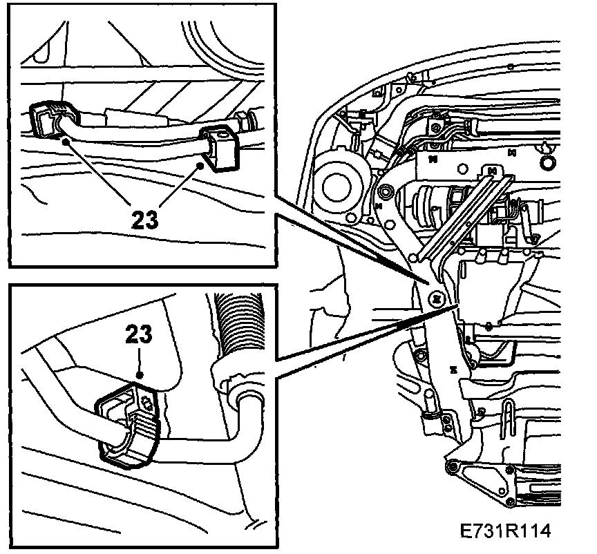 25. Tighten the bolts securing the gearbox torque arm to the subframe.