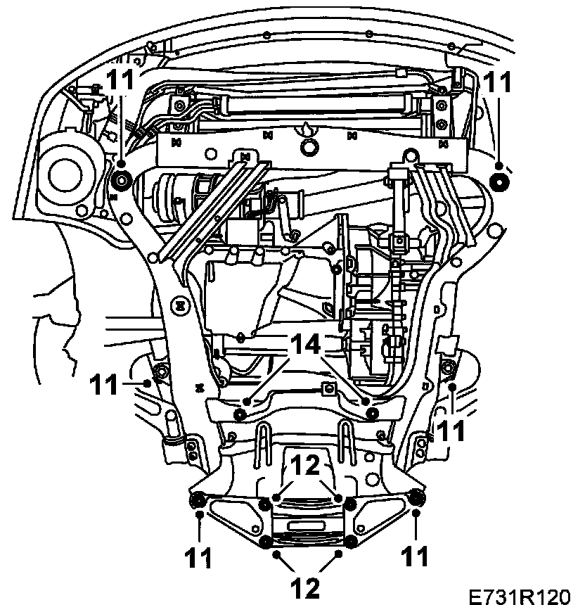 11. Tighten the subframe bolts.