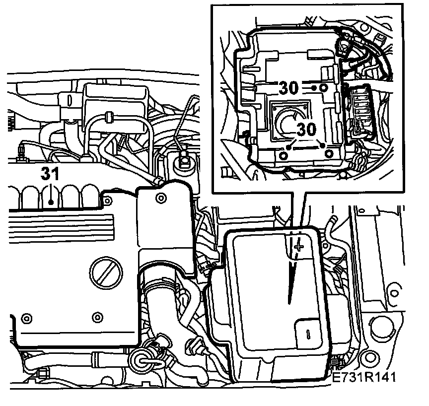 30. Fit the battery tray, battery and battery cover.
