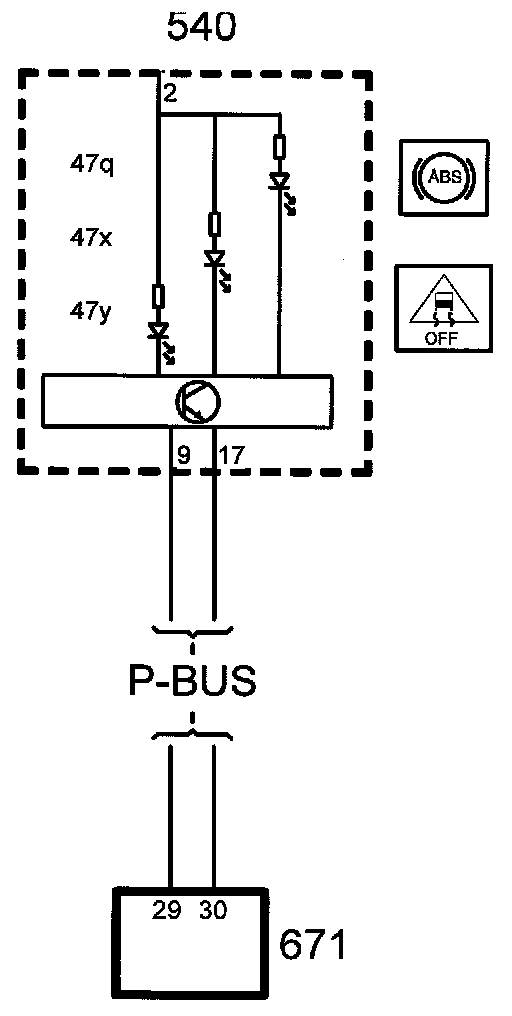 When the ESP or TCS function is activated, a bus message sent by the ESP control module lights up a lamp on the main instrument unit. The lamp extinguishes as soon as the function cuts out.
