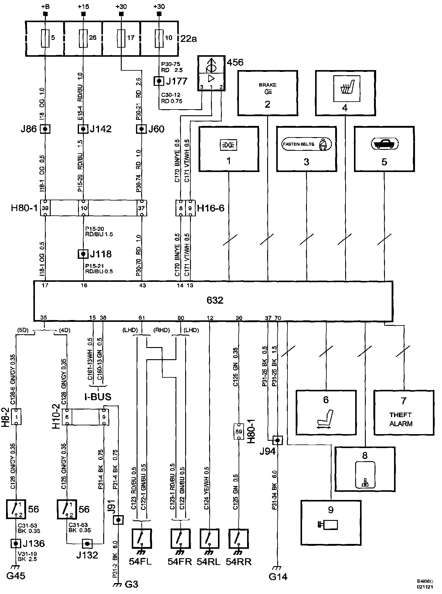 Power Supply Diagrams: The diagrams for the power supplies that may be feeding this system (+30, +15, +54, +X and +B) can be found at Power and Ground Distribution diagrams Diagrams