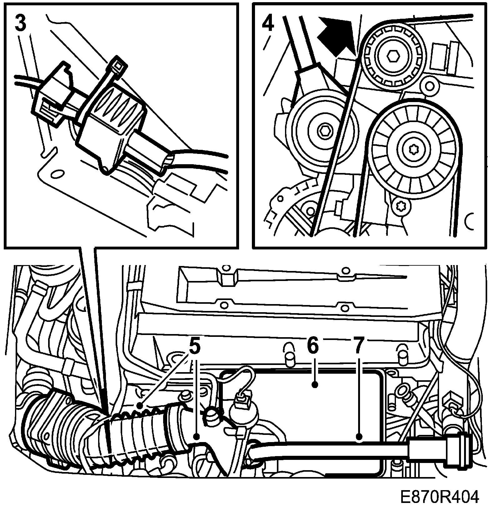 4. Fit the multigroove V-belt on the pulley and release the belt tensioner. Check that it is positioned correctly.