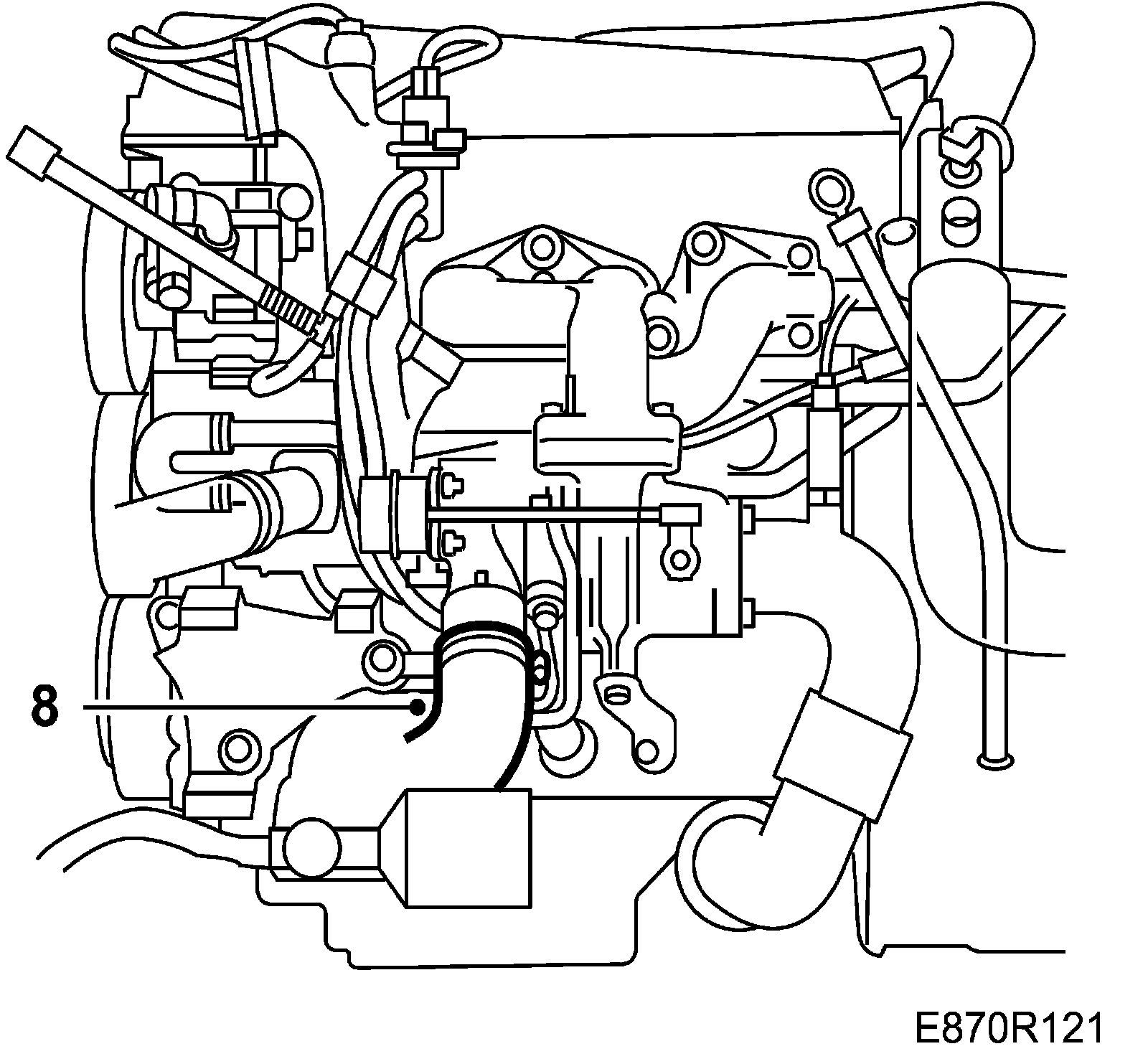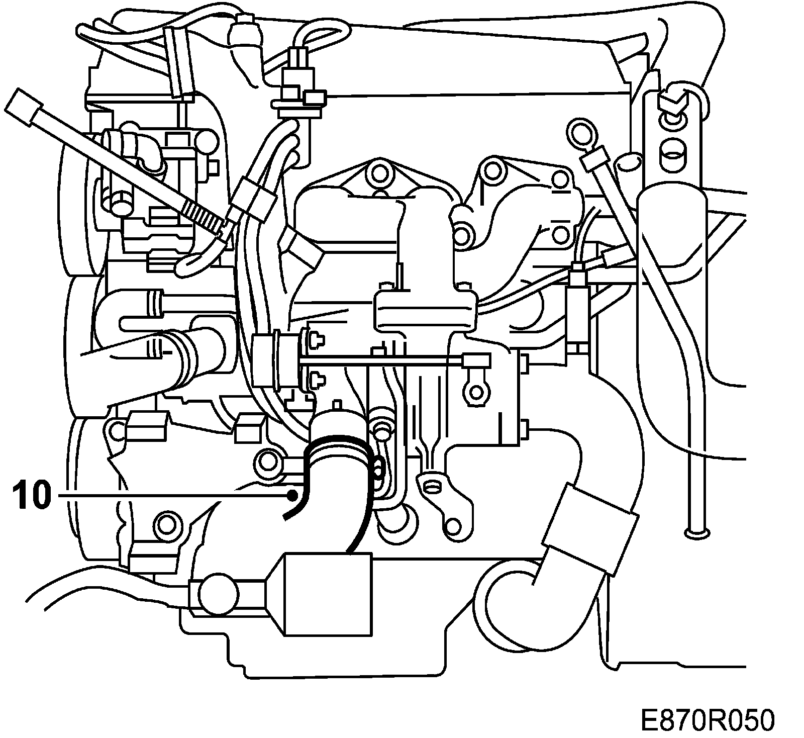 Disconnect the oil cooler hose from the bottom of the fan cowling.