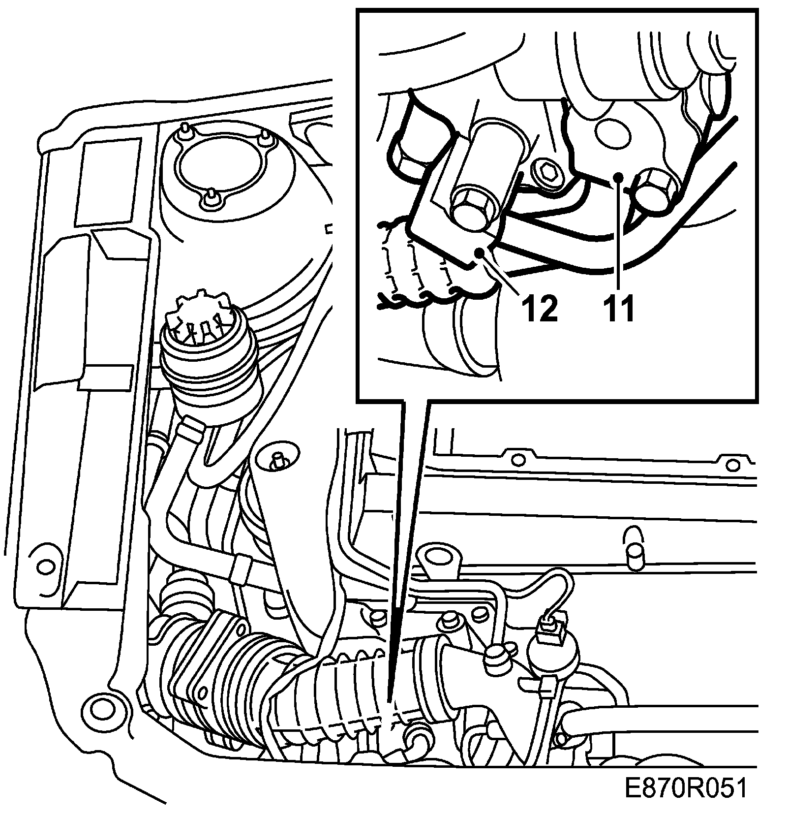 12. Loosen the high-pressure pipe from the compressor and push it aside. Plug the openings.