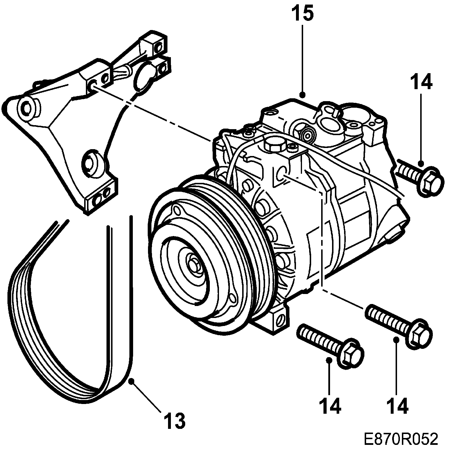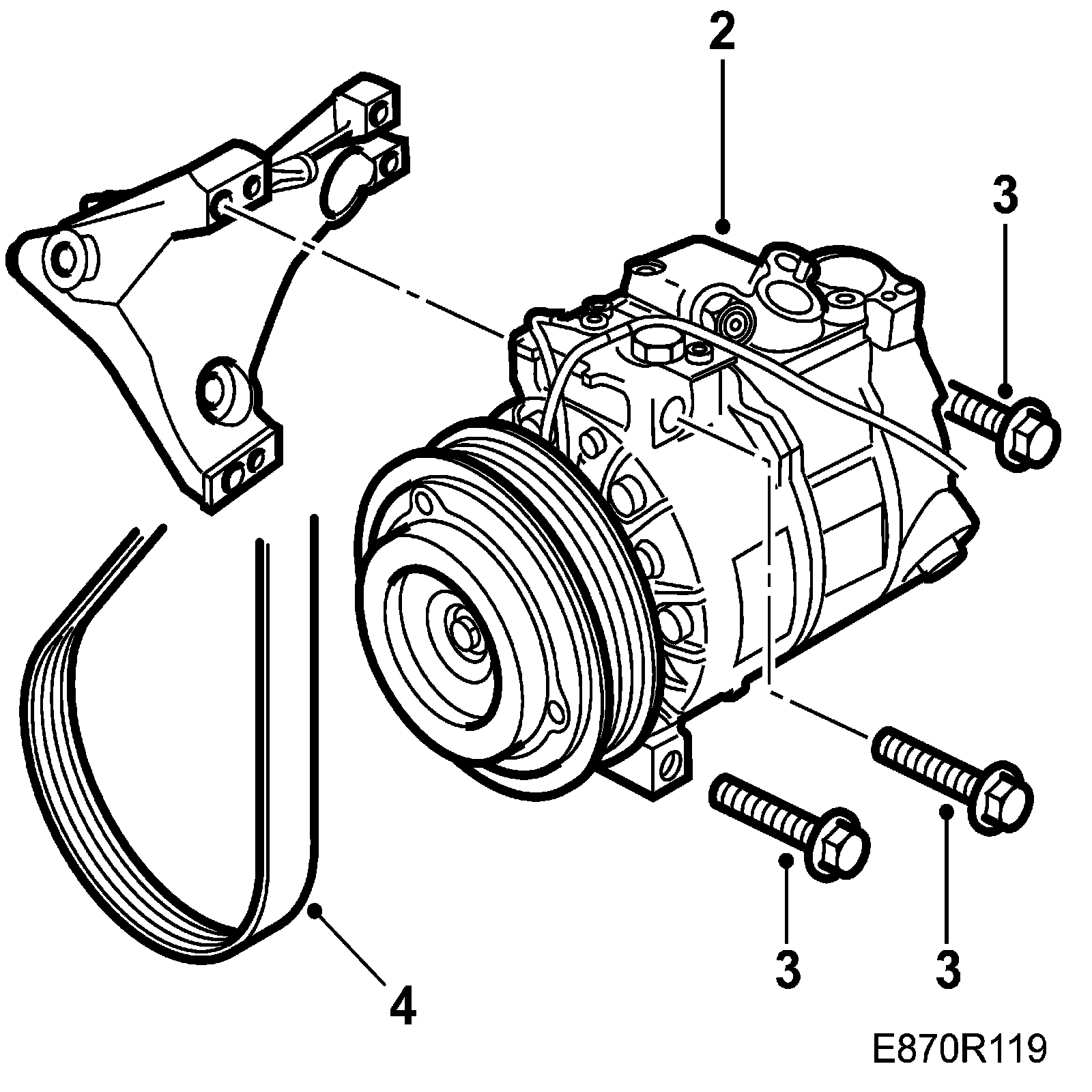 7. Connect the low-pressure pipe to the compressor, 1 bolt.