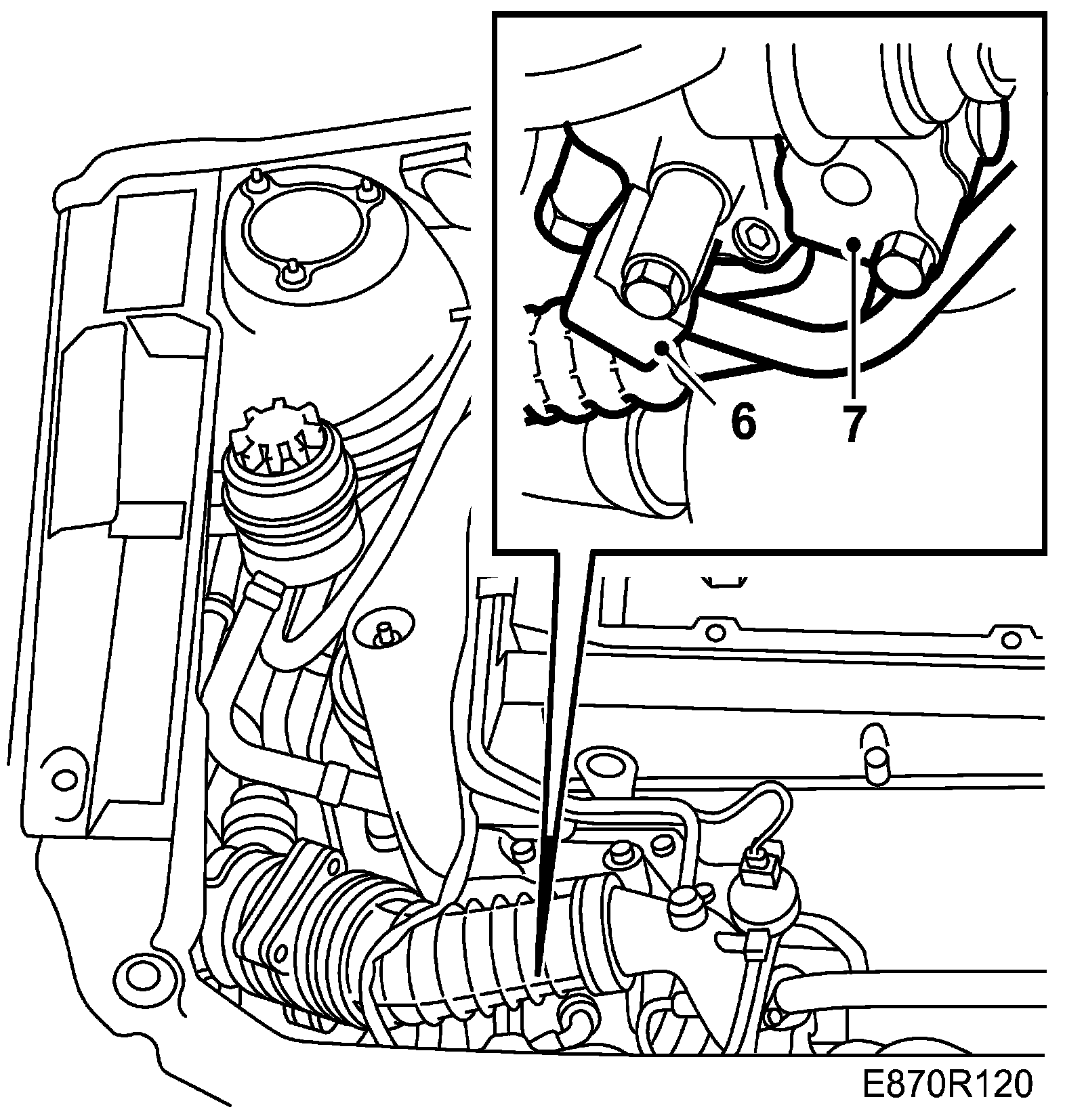 6. Connect the high-pressure pipe to the compressor, 1 bolt.