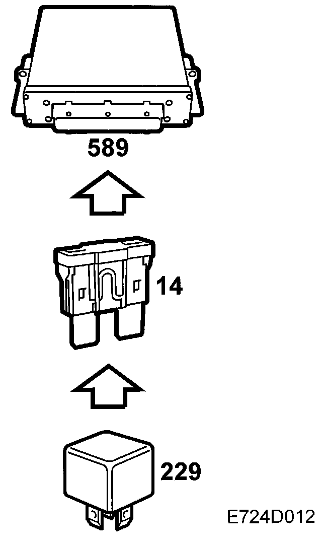 ^ If the supply from the main relay to the control module is missing, diagnostic trouble code P1640 will be generated, the throttle will close and the engine will stop.