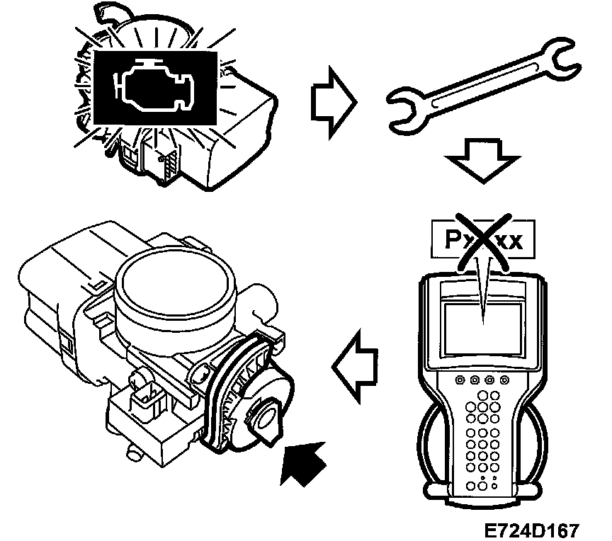 ^ If an internal control module fault that affects the throttle control should occur, diagnostic trouble codes P1601-P1611, P1613-P1614 or P1621 will be generated.